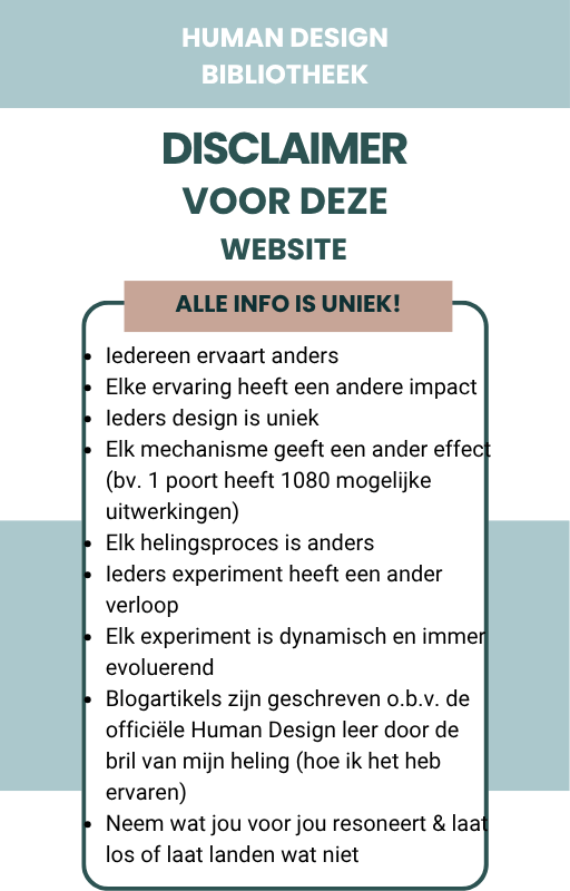 Wees eveneens voorzichtig met het interpreteren van de theorie in mijn blogartikels. Wat voor mij & mijn connecties gold kan voor jou of jullie helemaal een andere uitwerking hebben. Het leven zit vol dualiteit, zo ook Human Design en jouw ontwerp.